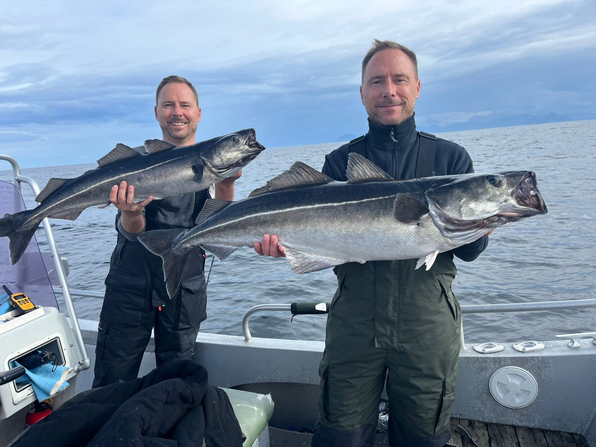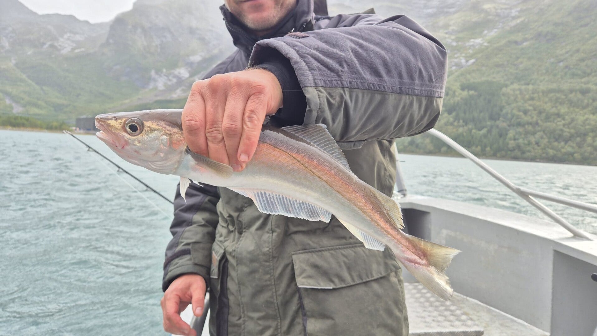 De eerste vissen kwamen al snel boven. Er zat heel veel koolvis in het fjord. Koolvissen tussen de 50cm en 90cm.