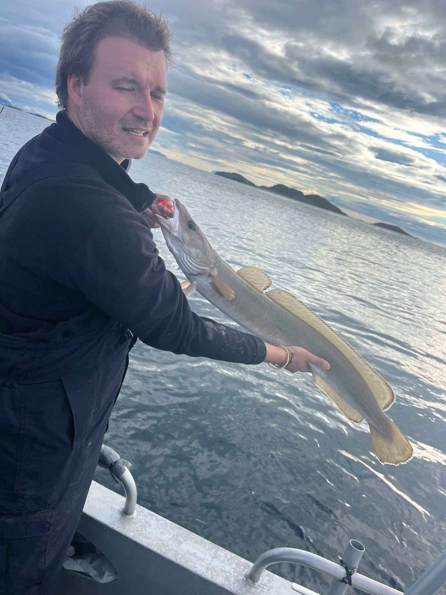 Af en toe een mooie gul/kabeljauw, heel veel lom maar geen grote koolvissen of heilbot kunnen vangen. Dit was onze laatste visdag op open zee. Morgen geven ze teveel wind en hopen we om in het fjord toch nog wat te kunnen vissen.