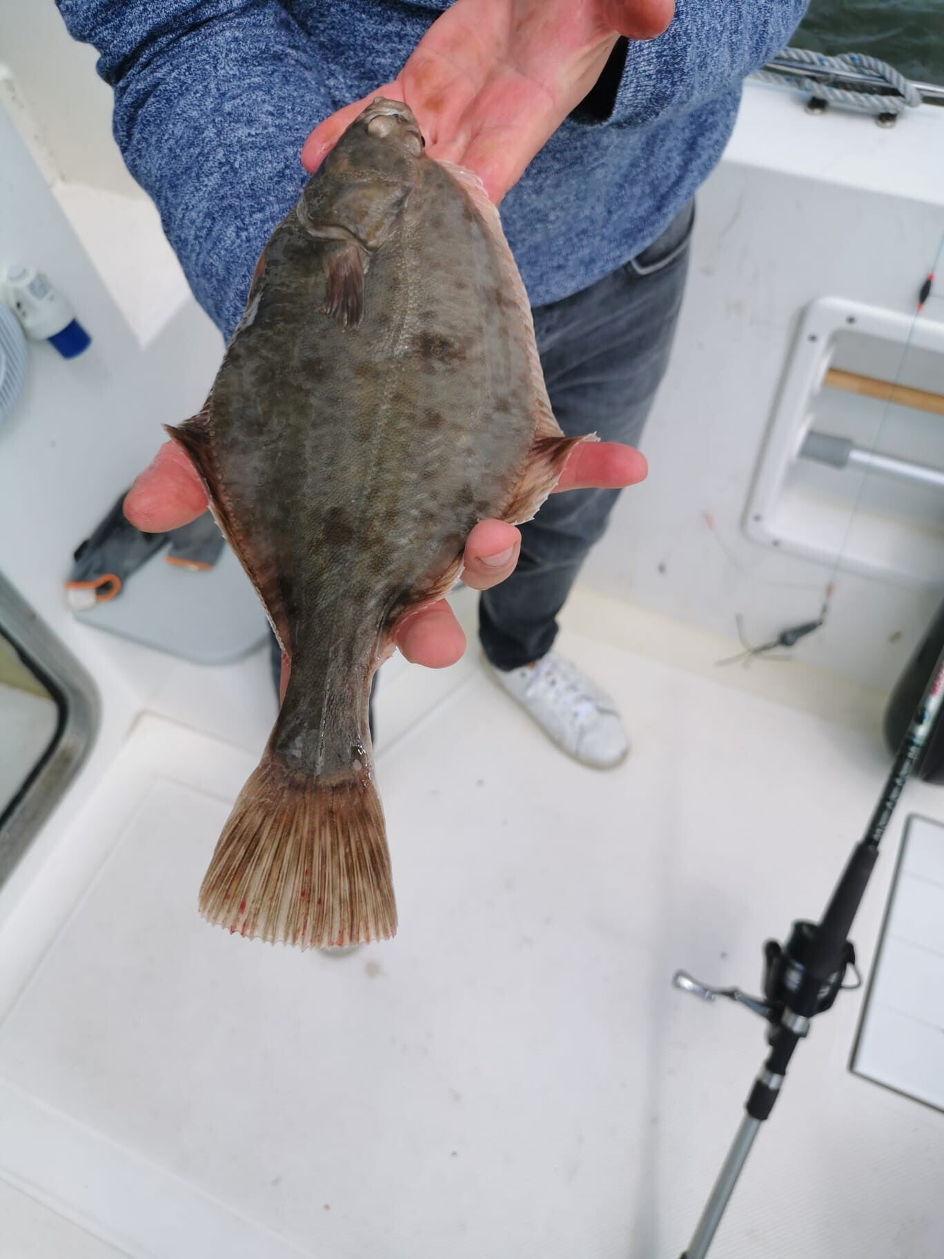 Rond 13:50u zijn we gestopt. Hebben minstens 30 vissen de man gevangen. Alle scharren onder de 23cm hebben we teruggezet.